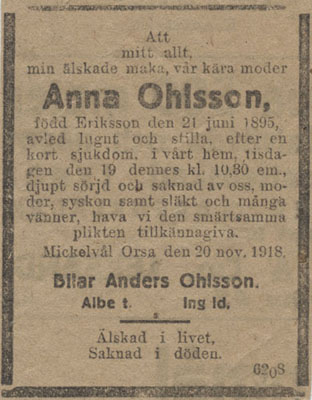 Håmmån Anna Strandberg född 1896-02-19 död 1958-11-29. Hon lämnade man
