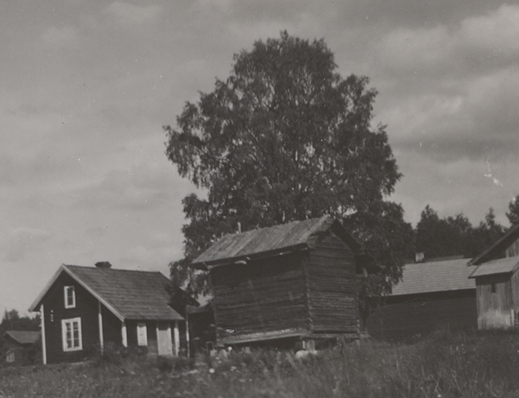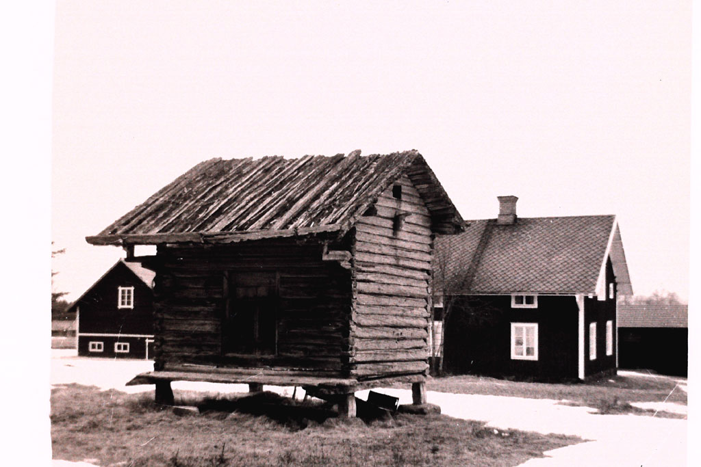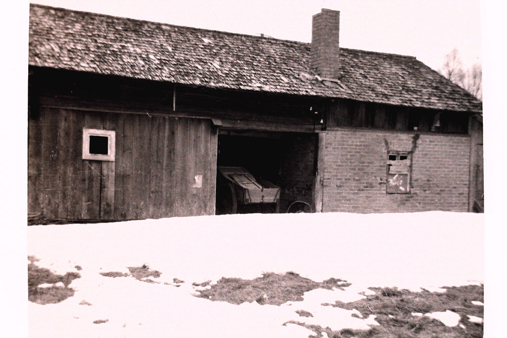 kortsidan på ladugårdsbyggnaden på gården Ruta. Bagarstugan revs senare