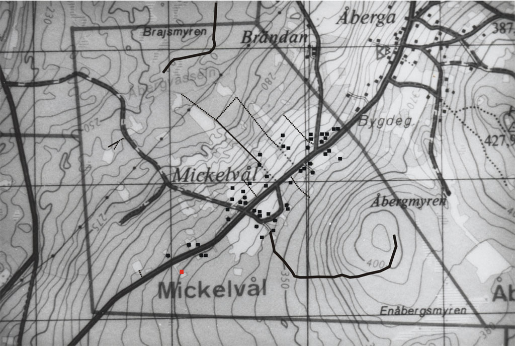 Mickelvåls byskola låg här vid stenarna på 1800-talet men |
