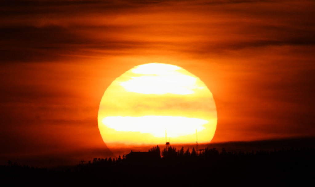 ![]() Toppstugan Grönklitt i solnedgången, sett från Mickelvål |