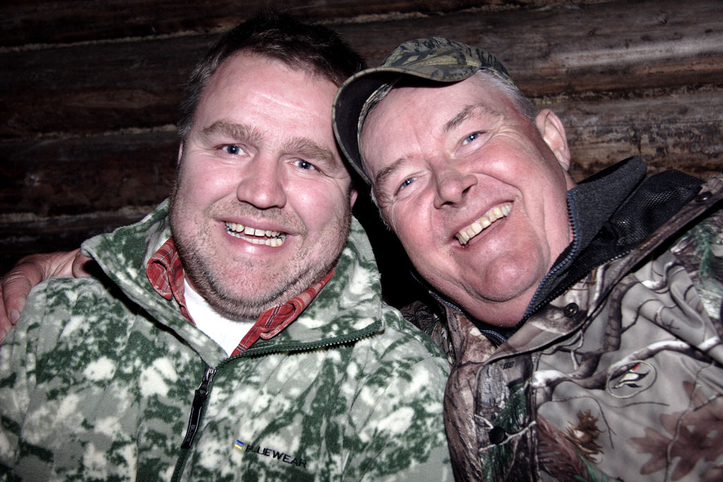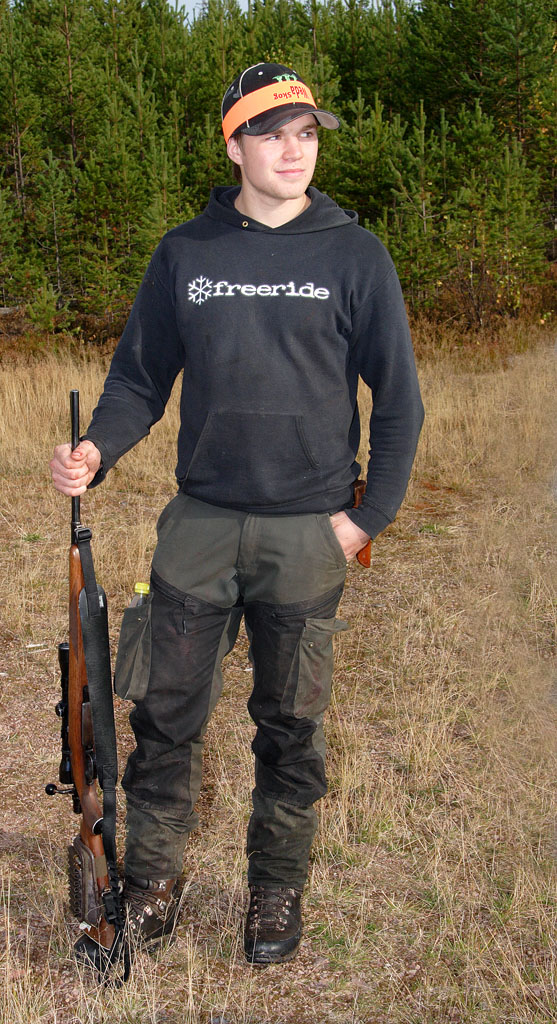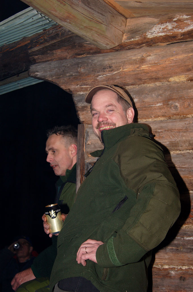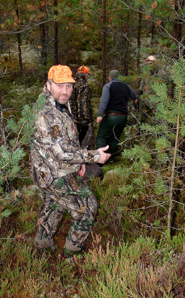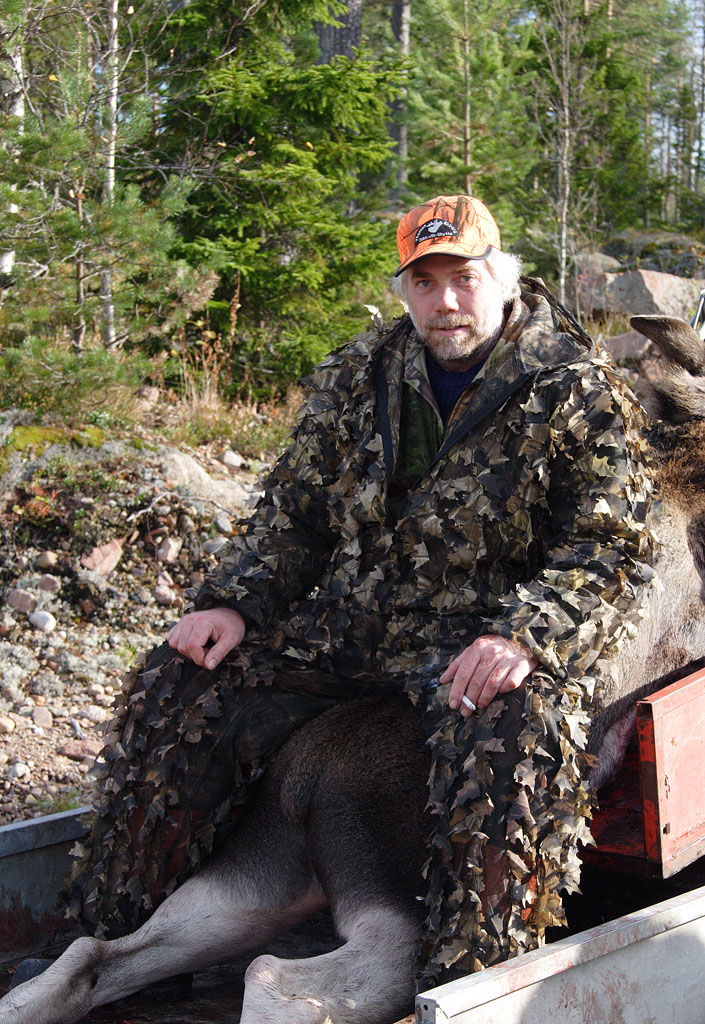 ![]() Micke Thoms, Mats Jakobsson och Tord Nilsson med Rolles älgkalv Tjärdalen hemskog |