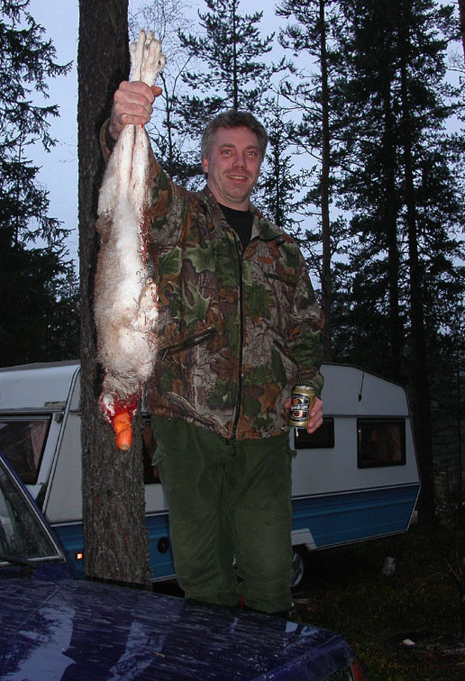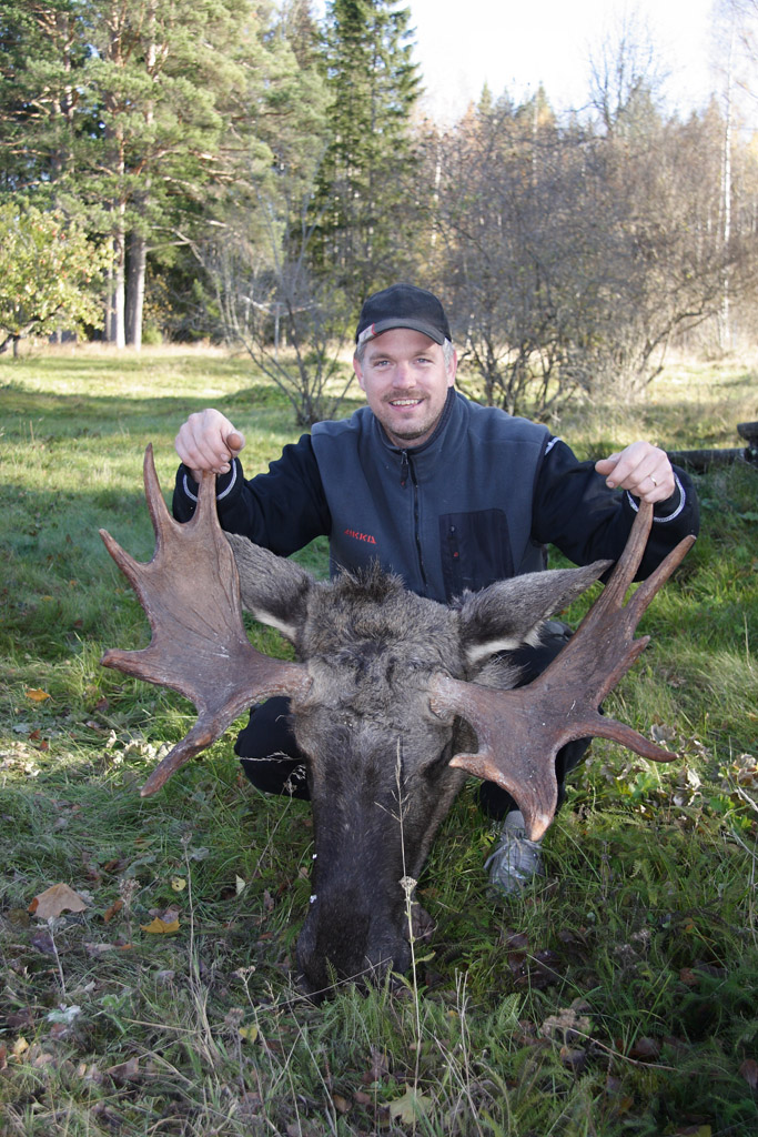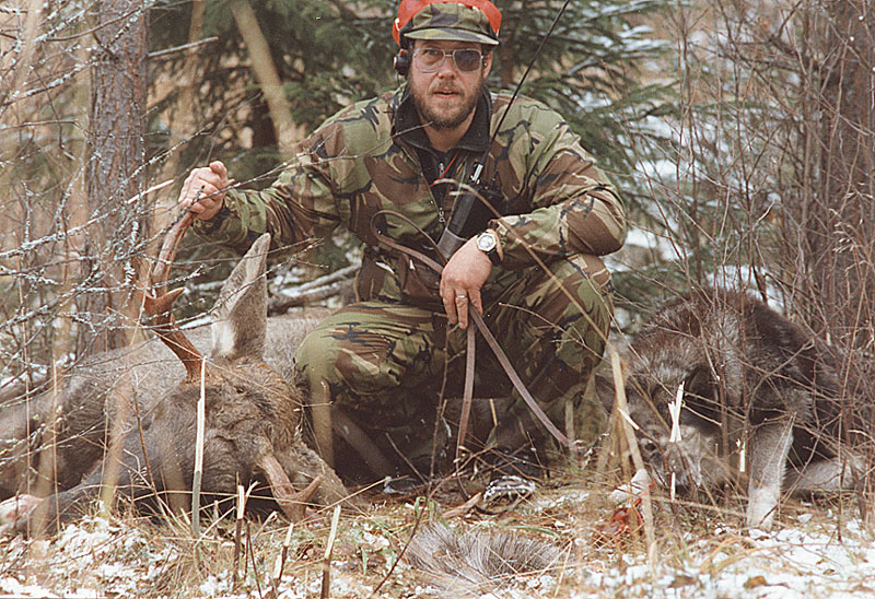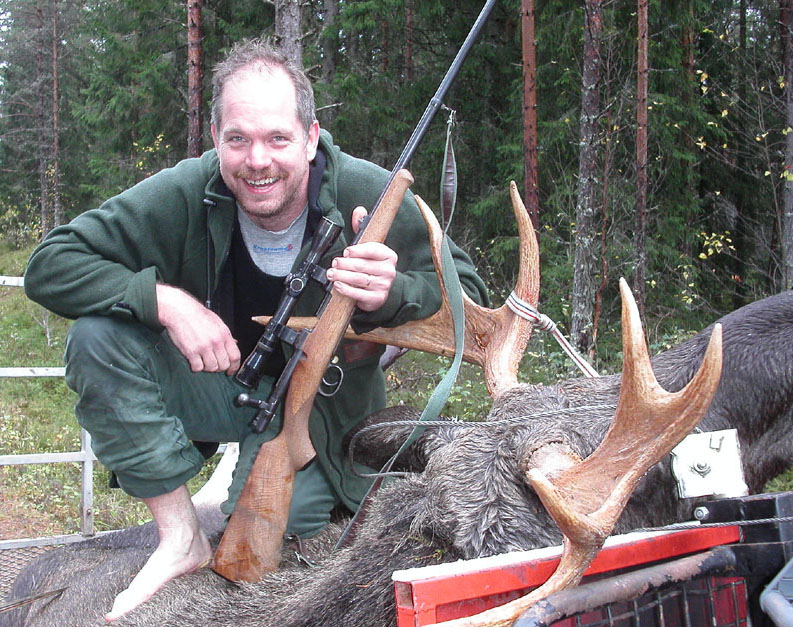 ![]() Anders Thoms med trofén av stortjuren från pass 14 utskogen år 1995 |