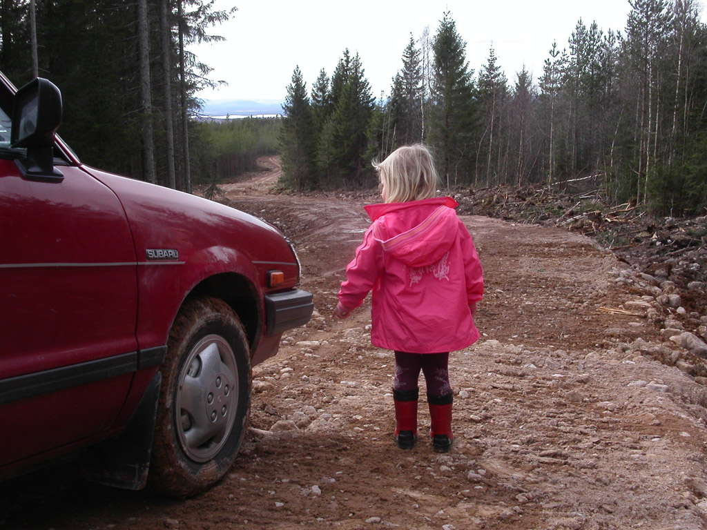 ![]() Evylina spanar in nya Hållängsvägen 2005 |