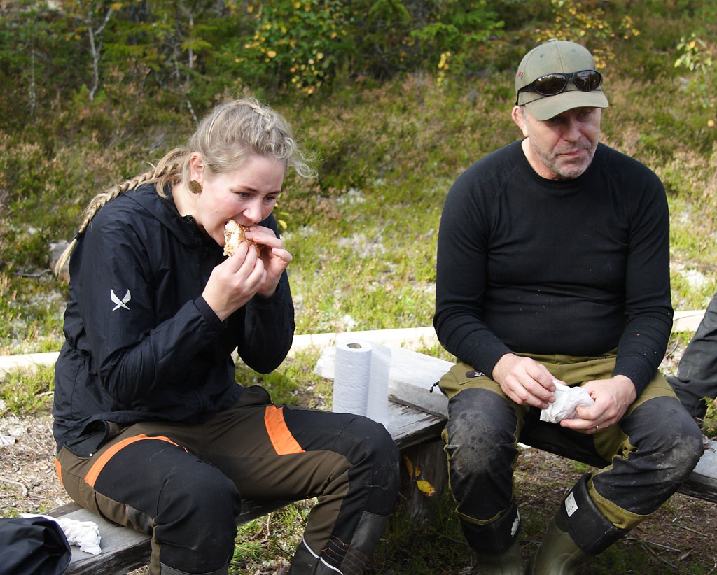 ![]() Jens Hansson och Thomas Johansson som smaskar på Evy Johansens goda äppelpaj |