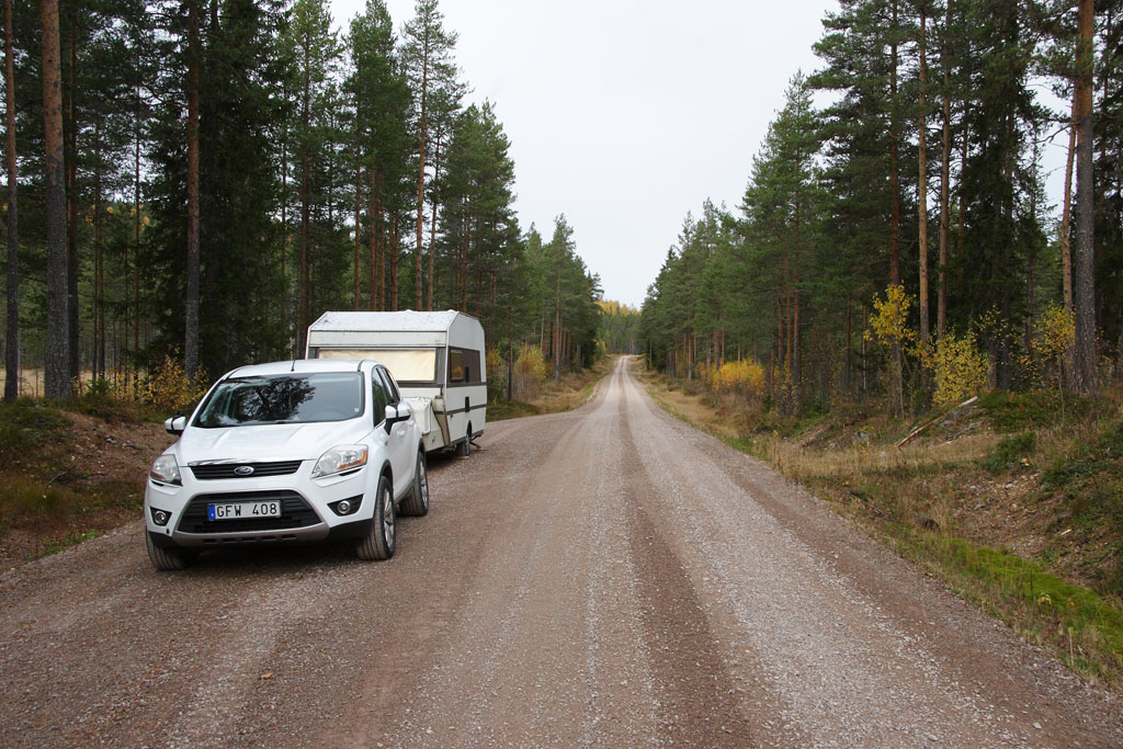 ![]() Äntligen matdags! Margaretas bil och husvagn i bakgrunden |