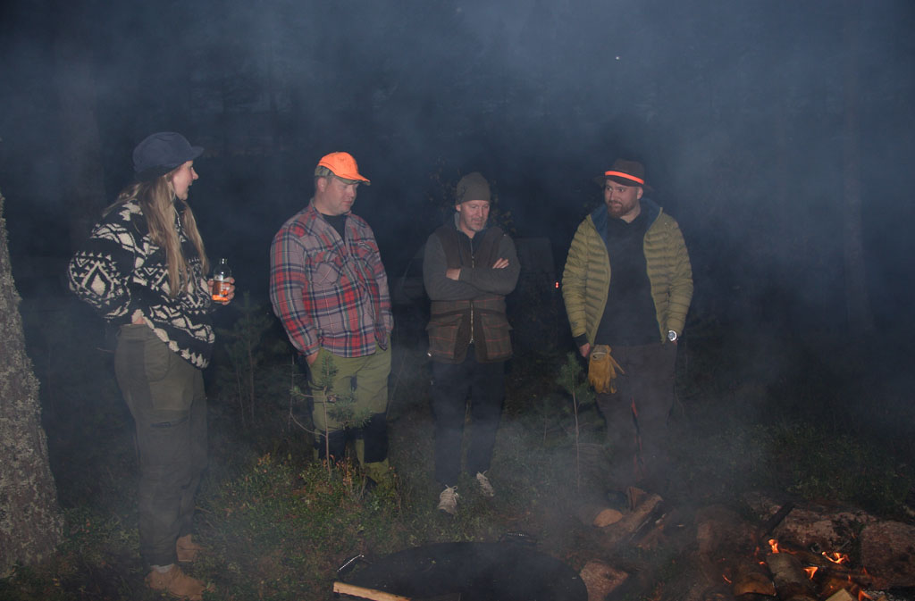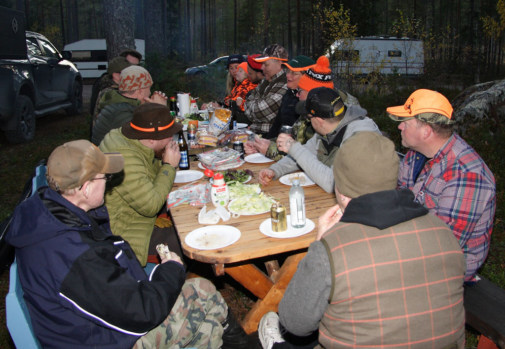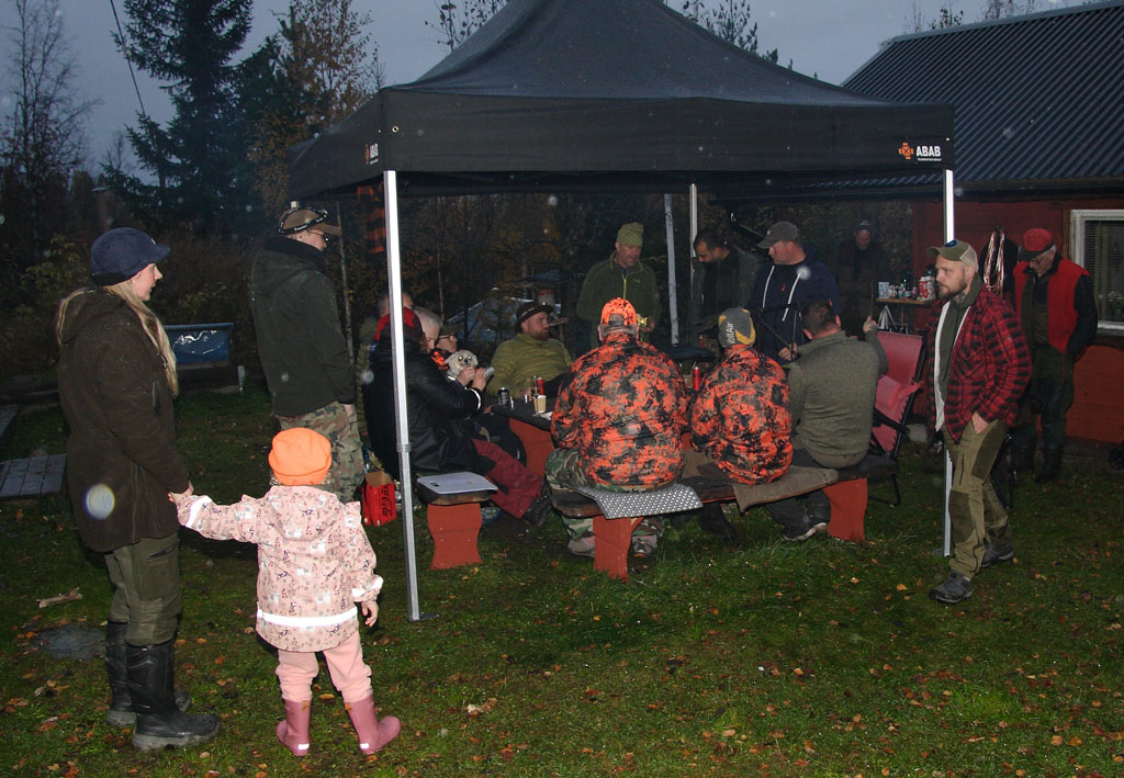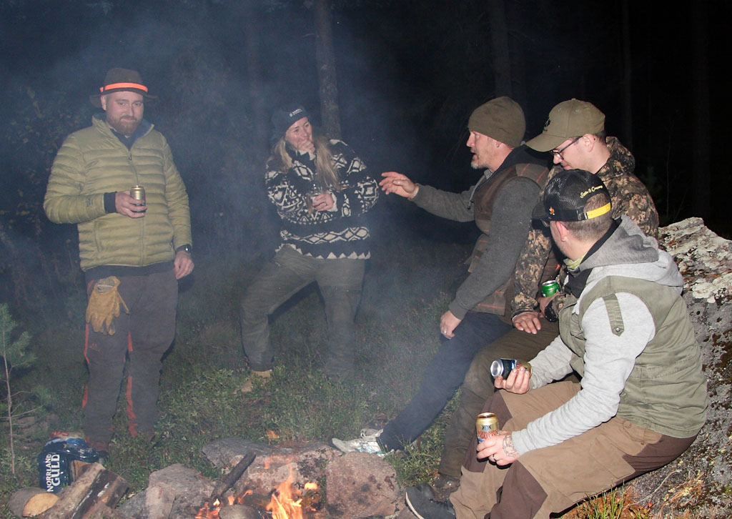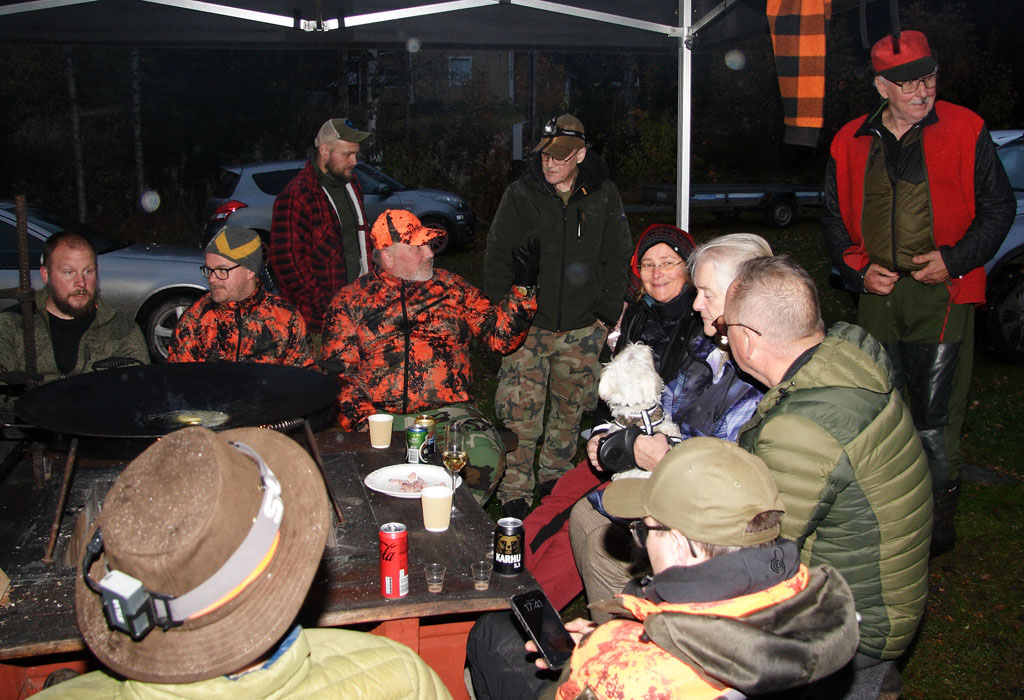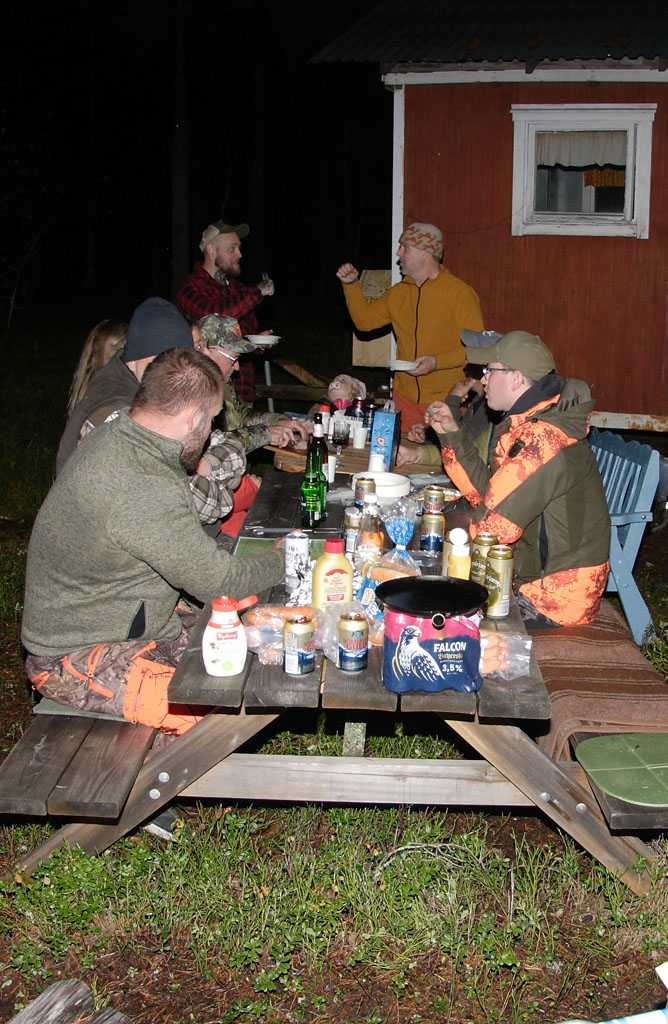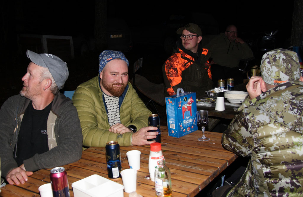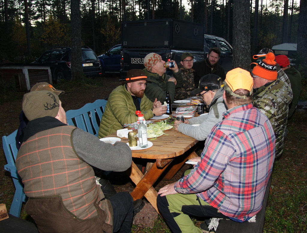 ![]() Mys med vin och öl i glada jägares sällskap |