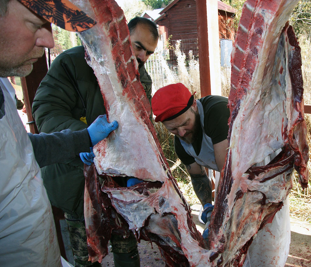 ![]() Flåning av Jesper Barrners kalv från hemskogen |